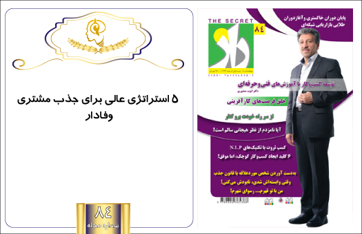 نادر قاهری مقاله ای با موضوع ” ۵ استراتژی عالی برای جذب مشتری وفادار ” در نیمه اول اسفند ماه ۹۴ مجله راز منتشر کرد.