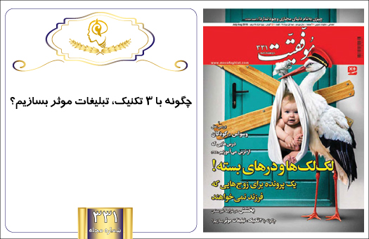 کمیل غفورمحسنی با مقاله کاربردی جدیدی با موضوع “چگونه با ۳ تکنیک، تبلیغات موثر بسازیم؟” در نیمه اول مرداد، شماره ۳۳۱ مجله موفقیت منتشر کرد.
